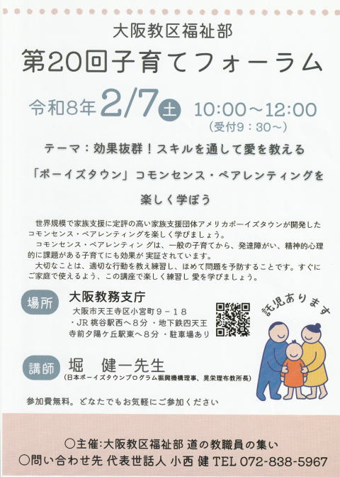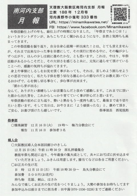 支部の教会で、陽気ぐらし講座を開催していただける教会がありましたら連絡お願いします。