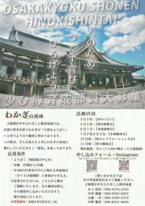 219日全教一斉ひのきしんデーの申込締切り。申込はwebサイトに詳細あります。