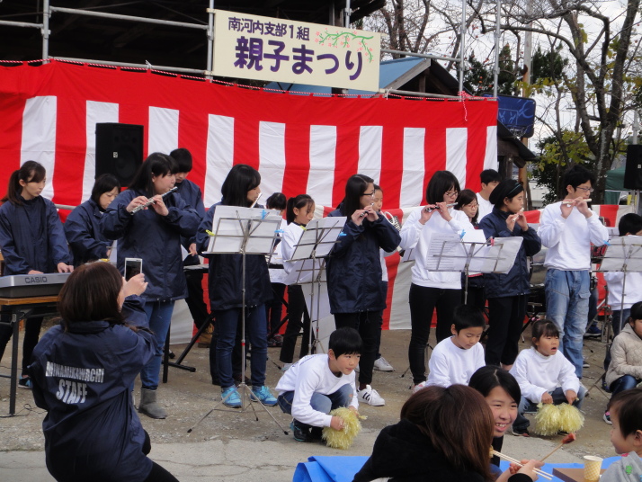 今年11月28日、1組親子まつりが行われました。天気は晴天でしたが、晩秋の冷たい風の吹く中一所懸命に演奏を行いました。